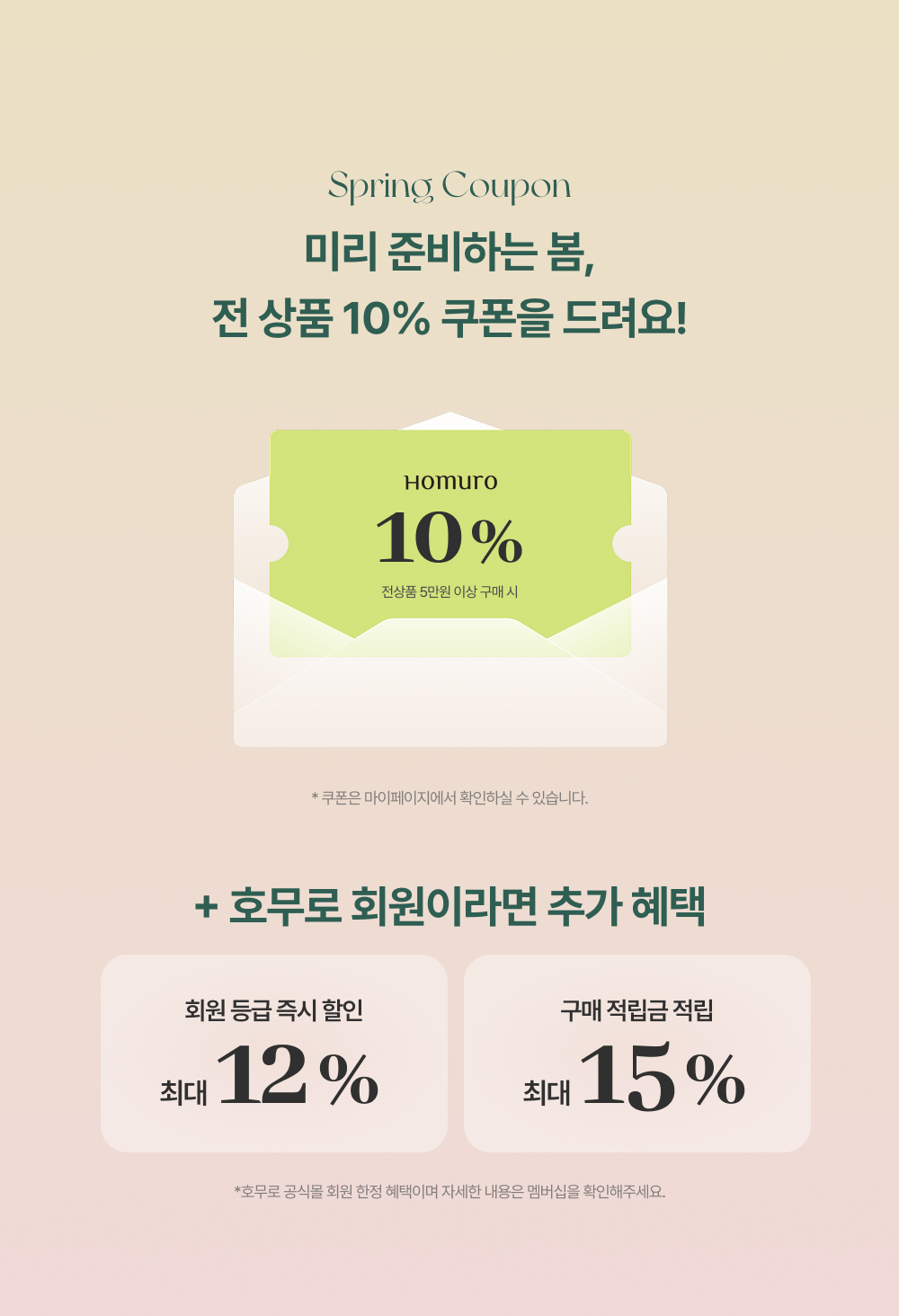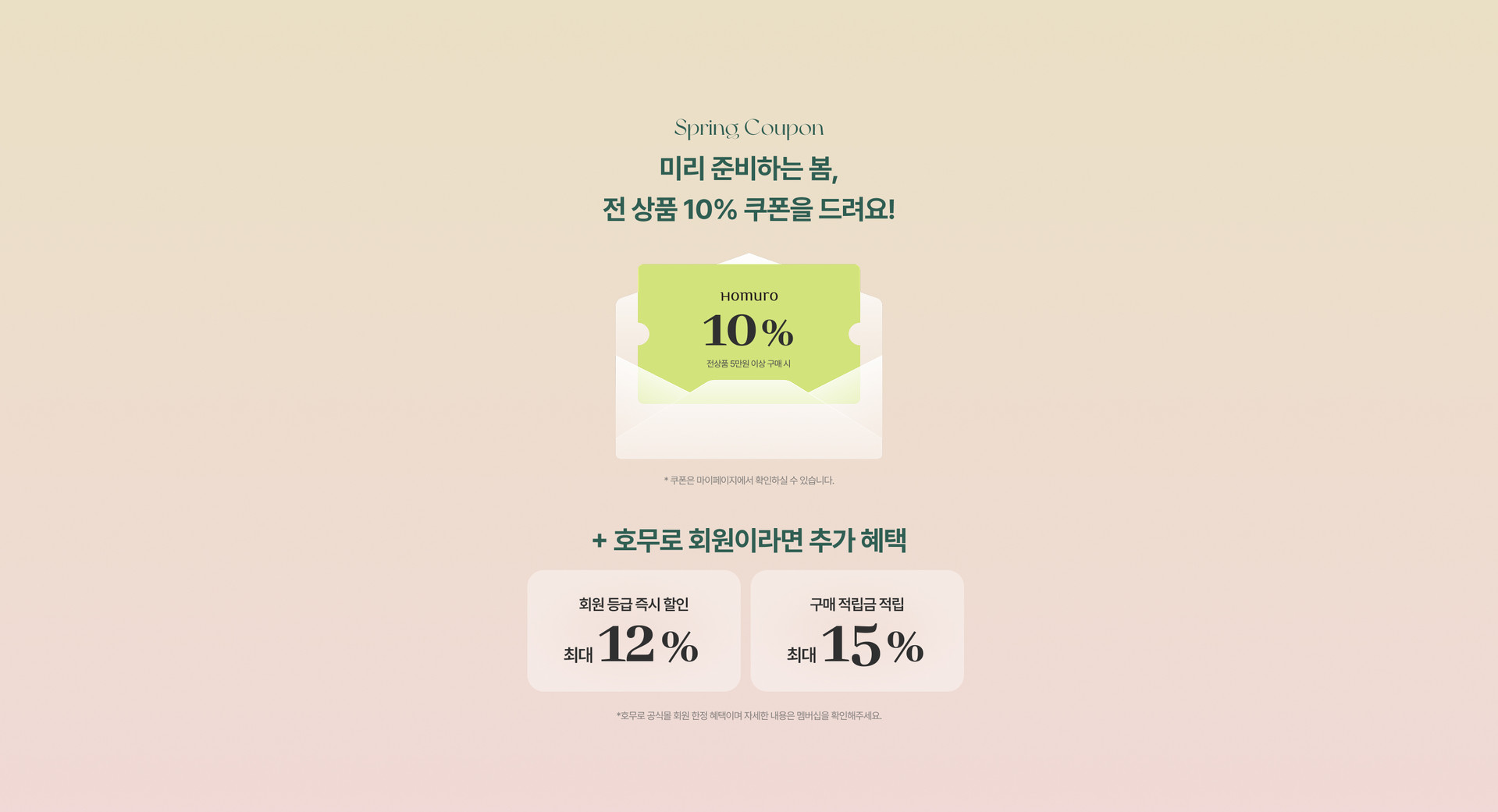 * 쿠폰은 호무로 온라인 자사몰 회원에 한해 지급 및 사용 가능합니다.