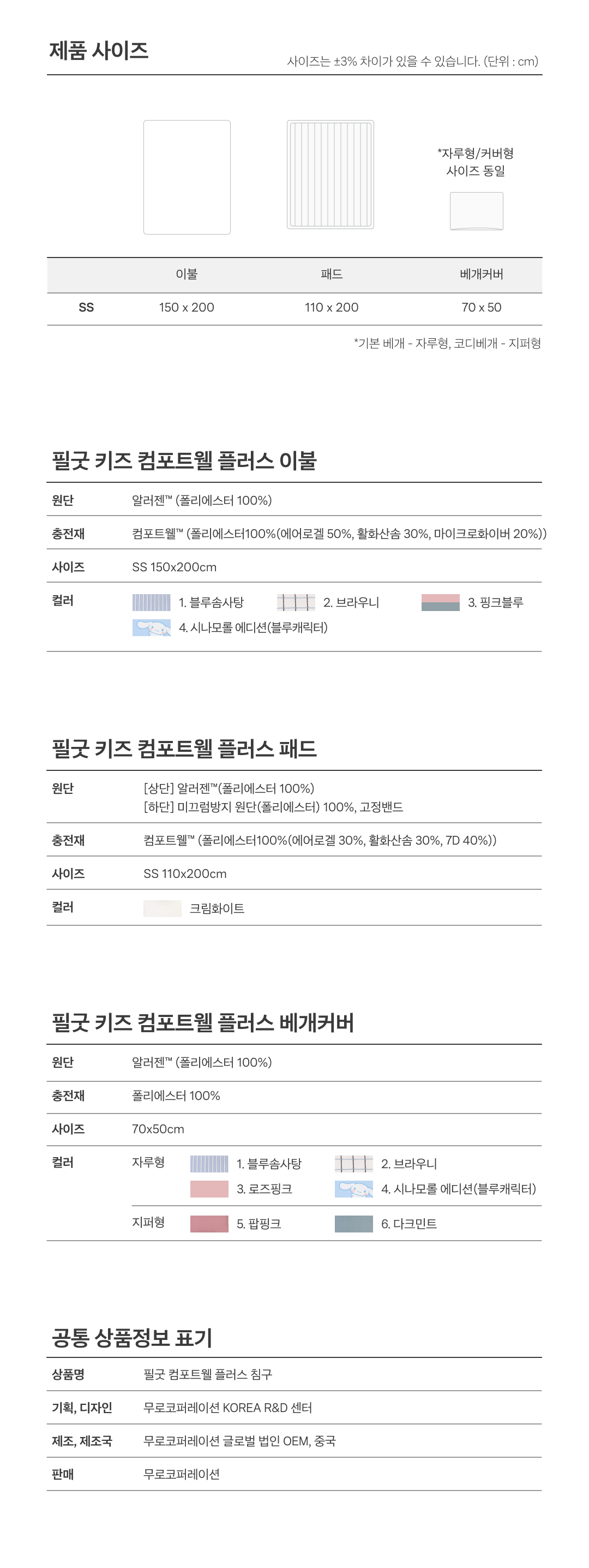 (극세사 타입은 건조기 사용 불가, 자연건조 권장)