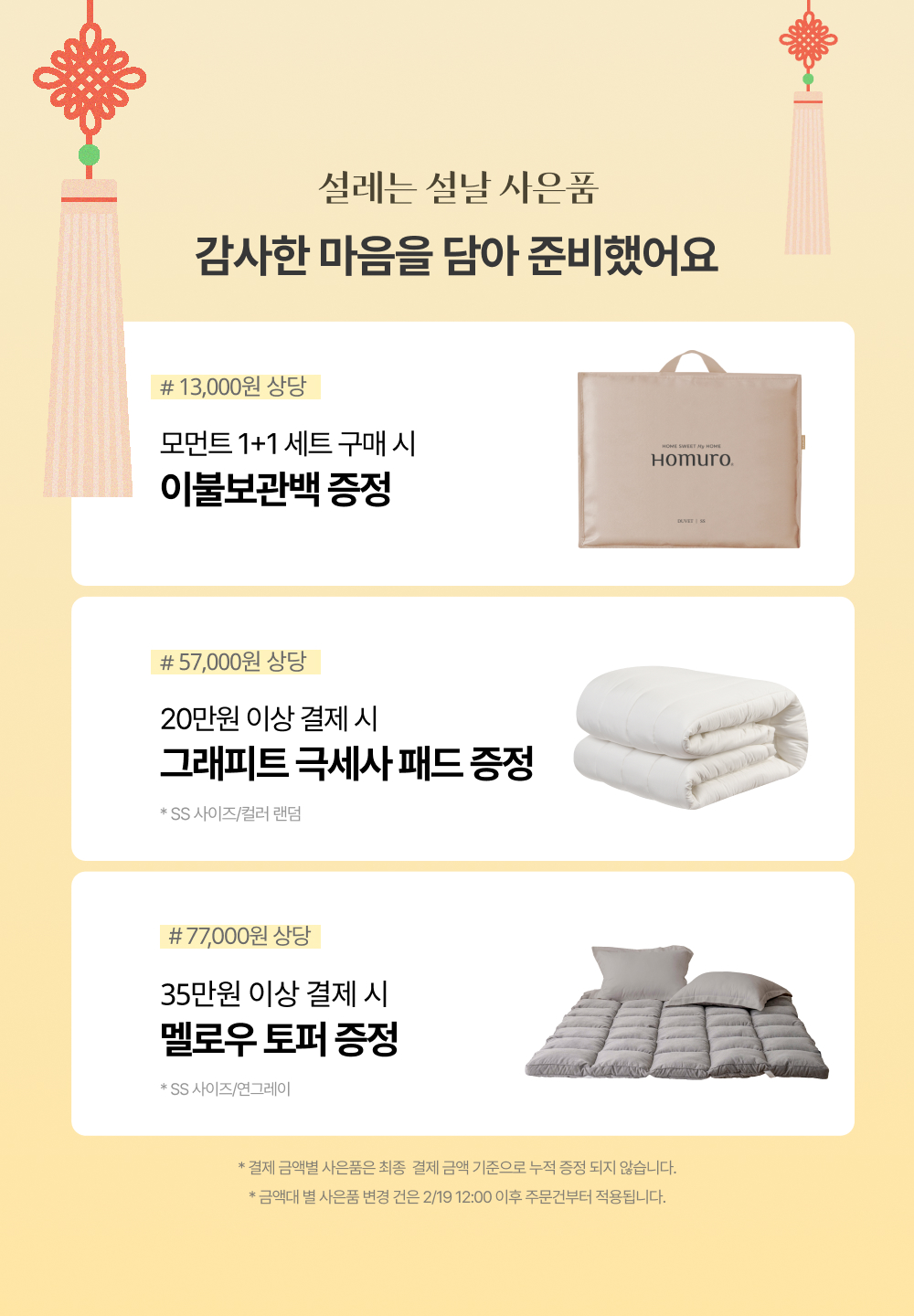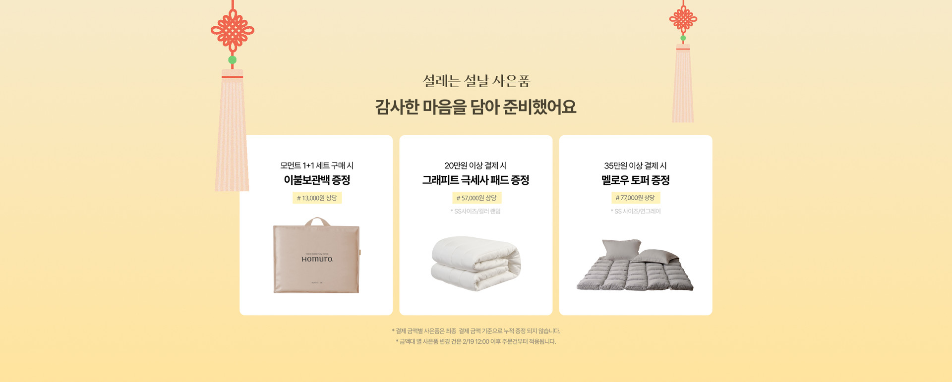 * 금액대별 사은품의 경우 누적 증정되지 않으며, 카드사 청구 할인 적용 시