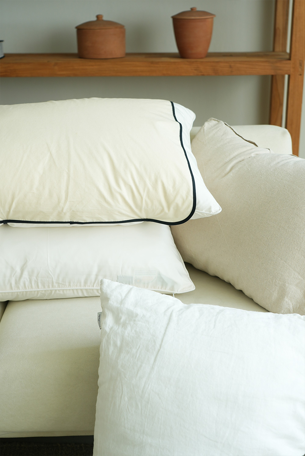 호무로 홈클래식 배드룸 패브릭 베개덮개 커버와 티슈케이스의 소재는. 린넨 55%, 코튼 45%(15수)로,