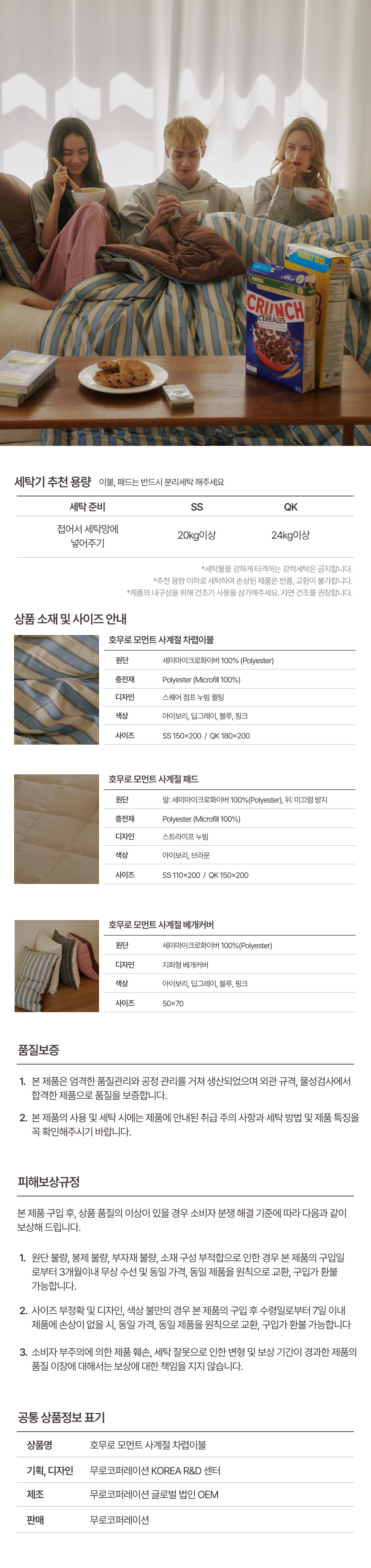 (극세사 타입은 건조기 사용 불가, 자연건조 권장)
