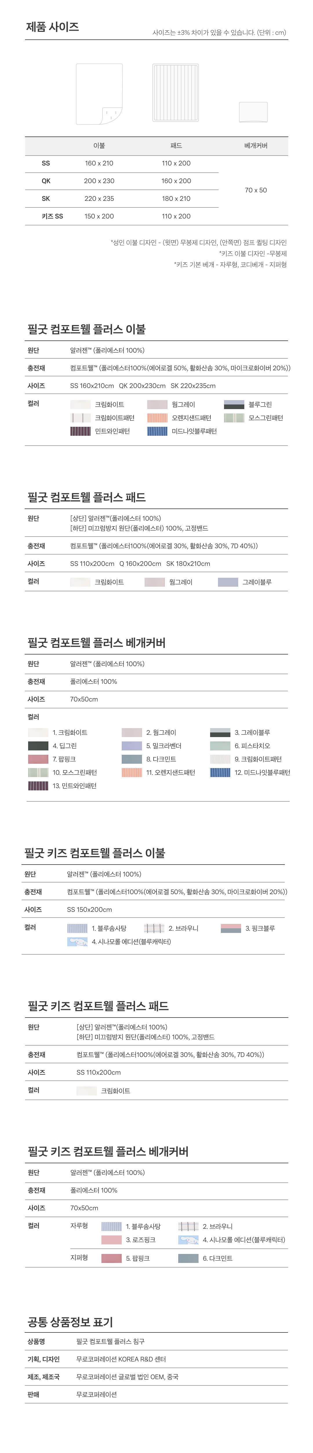 (극세사 타입은 건조기 사용 불가, 자연건조 권장)