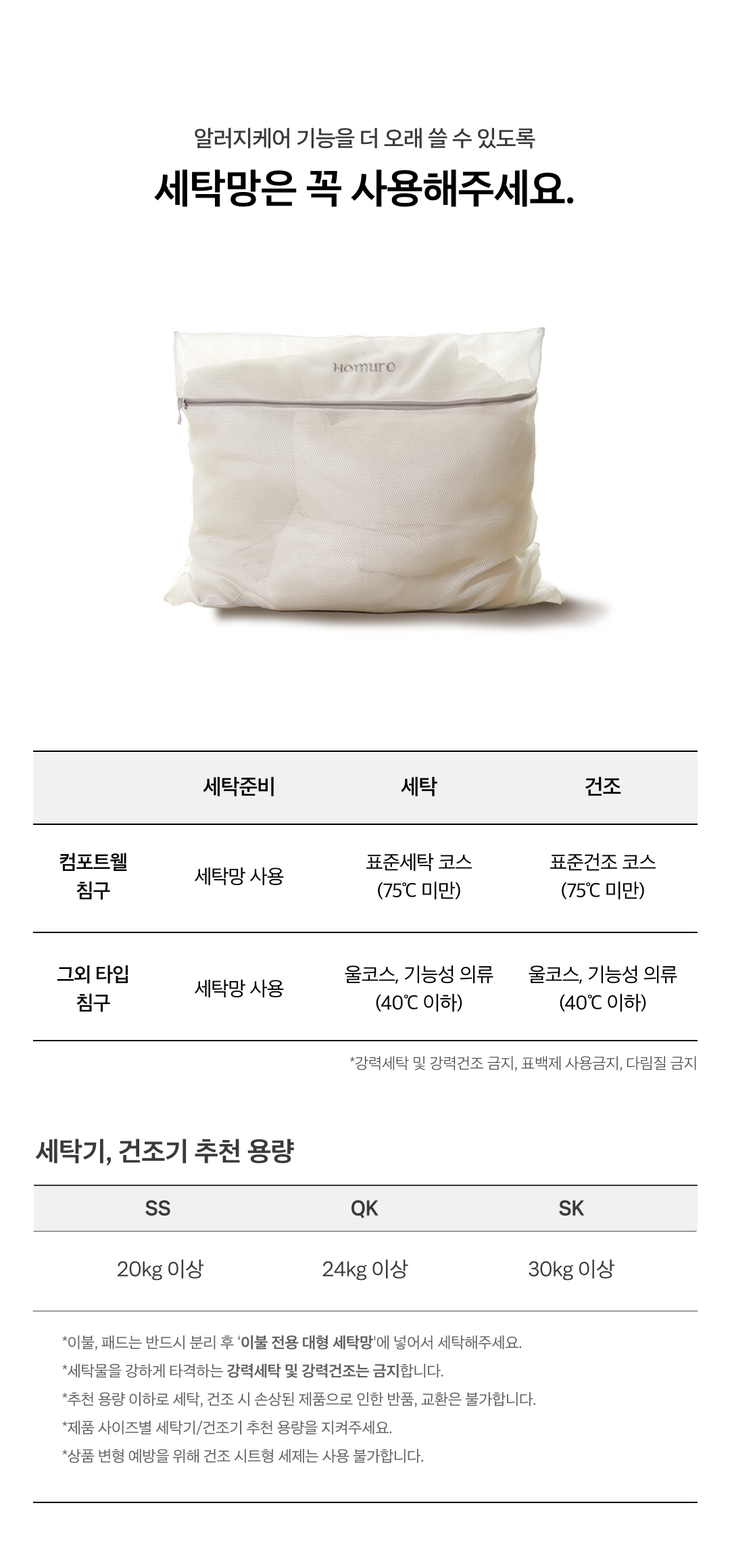 · 원단과 기능보호를 위해 전용 세탁망 사용 필수