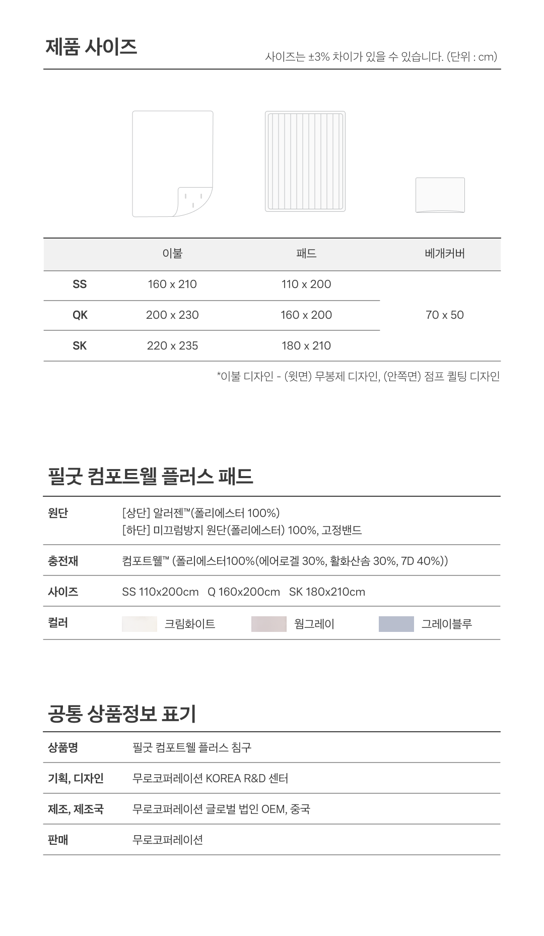(극세사 타입은 건조기 사용 불가, 자연건조 권장)