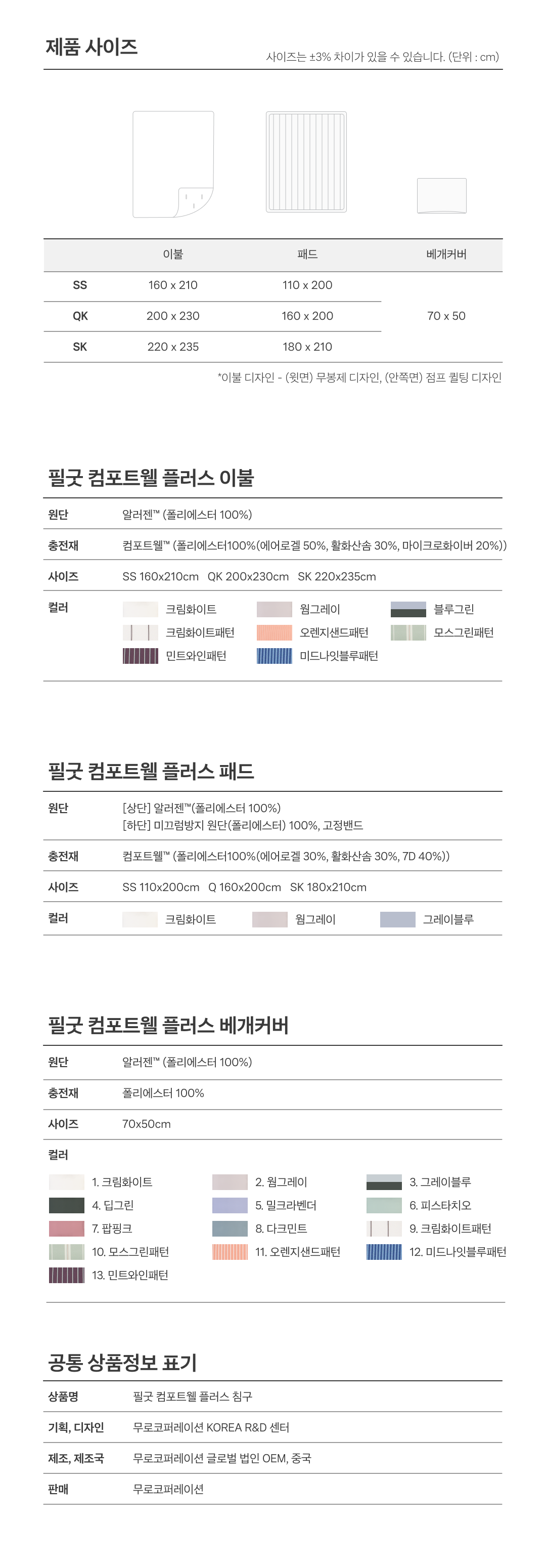 (극세사 타입은 건조기 사용 불가, 자연건조 권장)